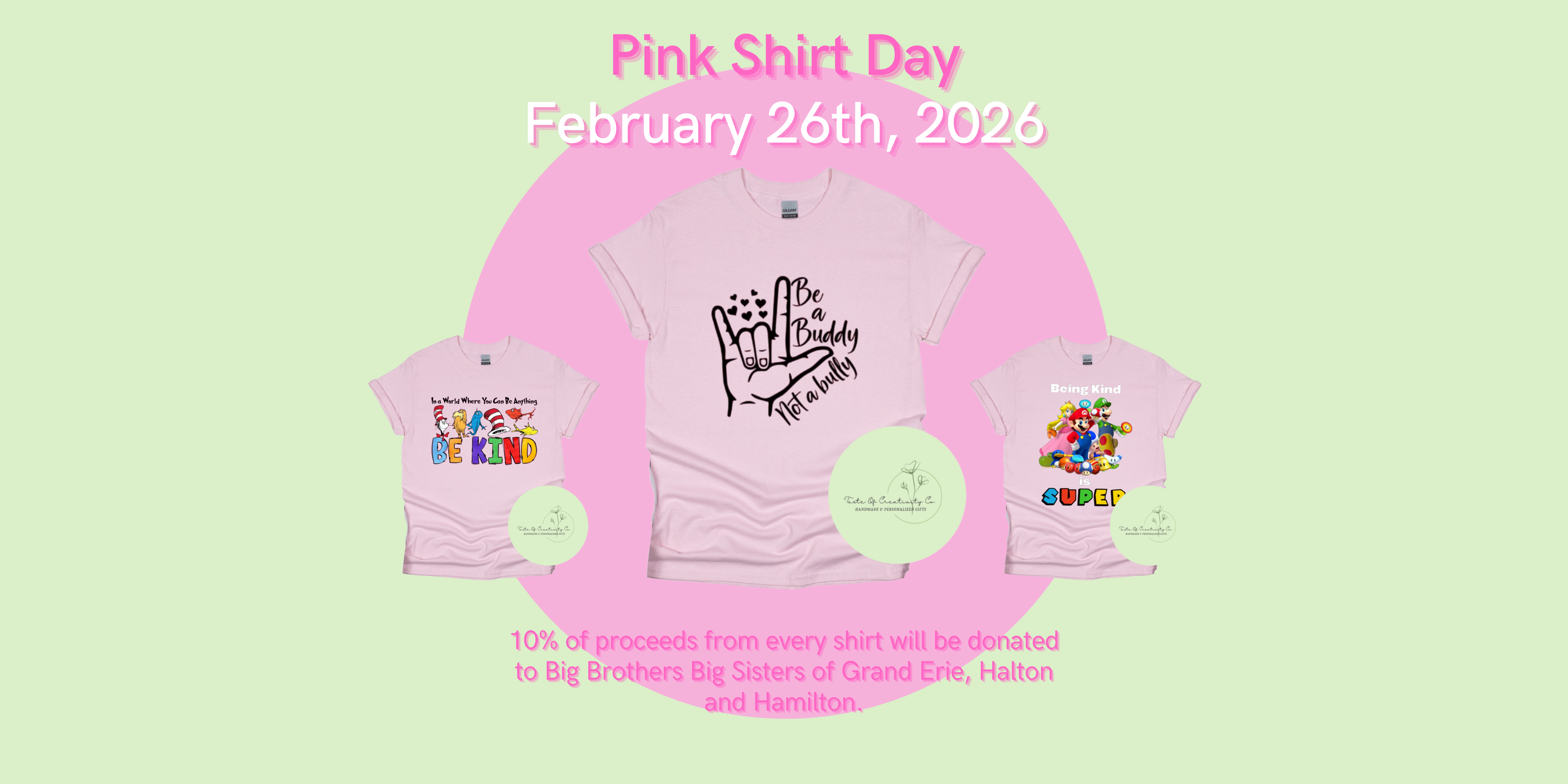 "Be a Buddy, Not a Bully" T-Shirt, Anti-Bully Apparel, Pink Shirt Day, Kindness Matters Collection *10% OF PROCEEDS DONATED TO BBBS-GEHH*