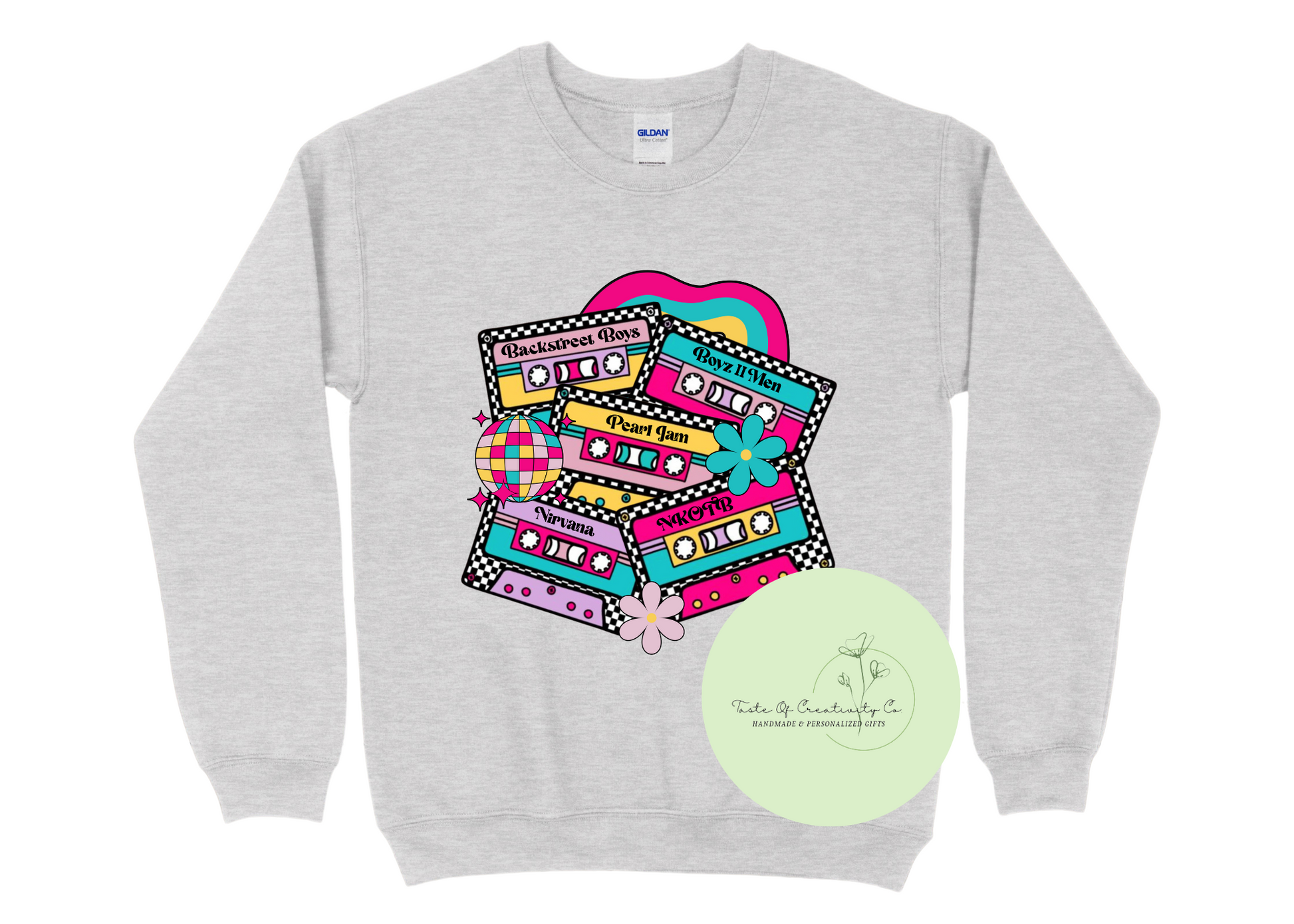 90s Band Cassettes Sweater, Retro Sweatshirt, Retro Aesthetic, Cassettes Aesthetic, 90s Apparel