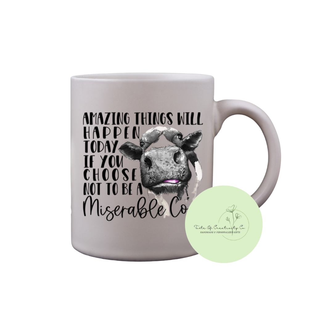 Amazing Things Will Happen Today If You Choose Not To Be a Miserable Cow Coffee Mug, Dishwasher Safe, Sarcastic Coffee Mug