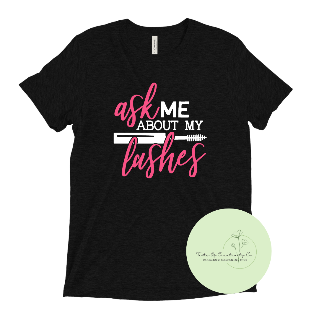 "Ask Me About My Lashes" T-Shirt, Esthetician Apparel, Lash Technician Gift
