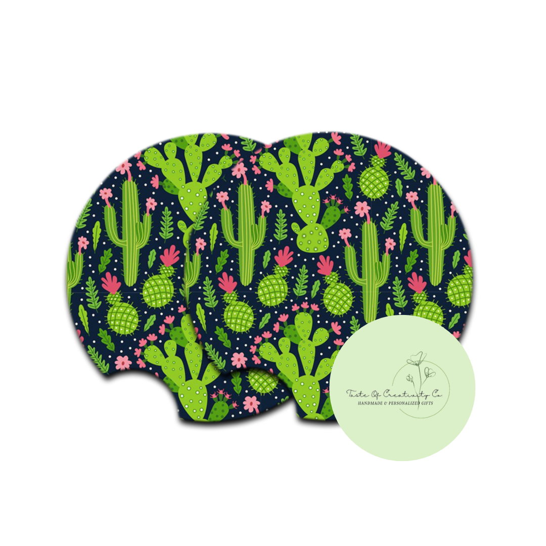 "Bright Cacti" Car Coaster Set, Car Accessory, Gift for Her