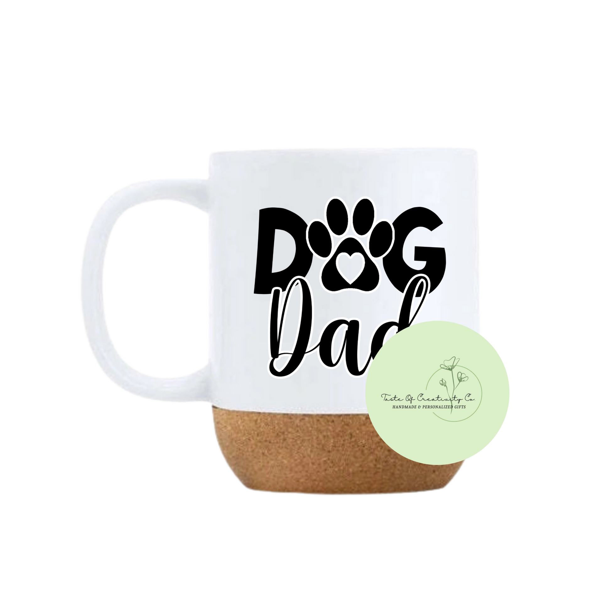 A perfect gift for the best dog parent! These chic cork-bottom mugs cine with a lid, perfect for traveling.