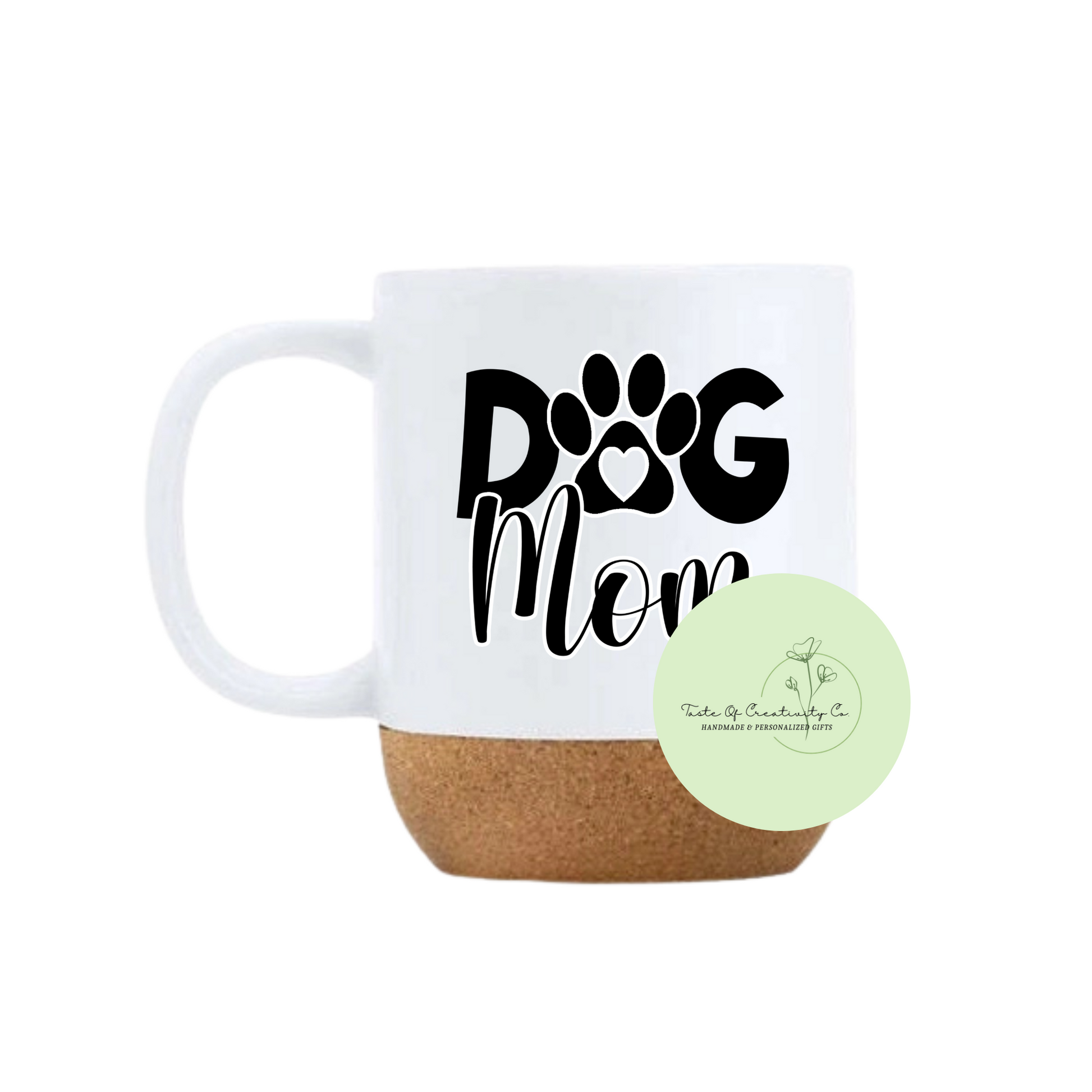 A perfect gift for the best dog parent! These chic cork-bottom mugs cine with a lid, perfect for traveling.