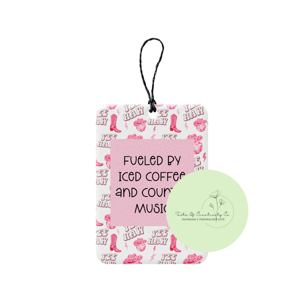 "Fuelled By Iced Coffee and Country Music" Rearview Freshener, Car Air Freshener, Rearview Mirror Hanger, Car Accessory