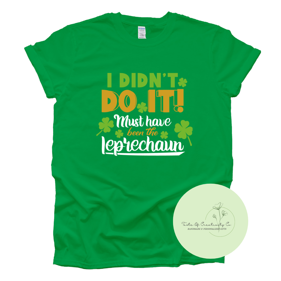 "I Didn't Do It, Must Have Been The Leprechaun" T-Shirt, St. Patrick's Day Apparel, Funny T-Shirt