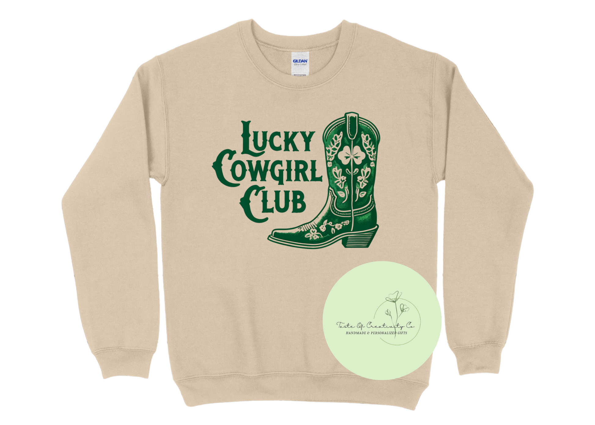 "Lucky Cowgirl Club" Crewneck Sweater, St. Patrick's Day Apparel, Disco Cowgirl Collection
