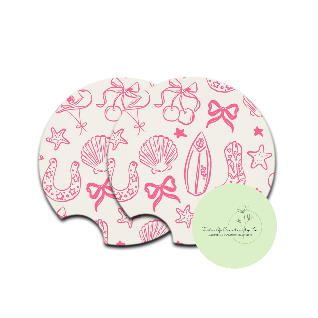 Pink Coastal Cowgirl Car Coaster Set, Car Accessory, Gift for Her, Coastal Cowgirl Collection, Disco Cowgirl Collection