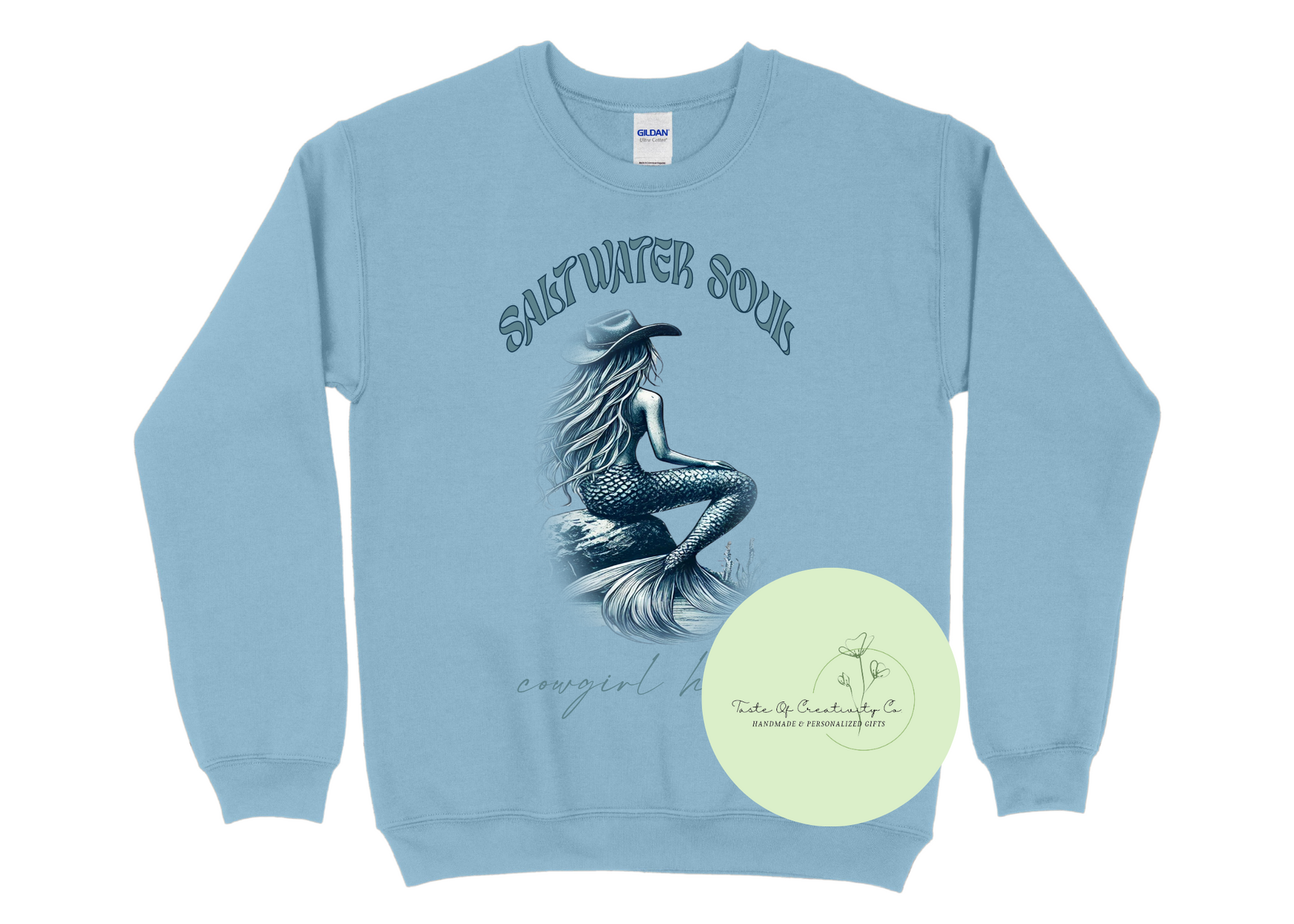 "Saltwater Soul, Cowgirl Heart" Crewneck Sweater, Western Sweater, Country Apparel, Coastal Cowgirl Collection, Disco Cowgirl Collection