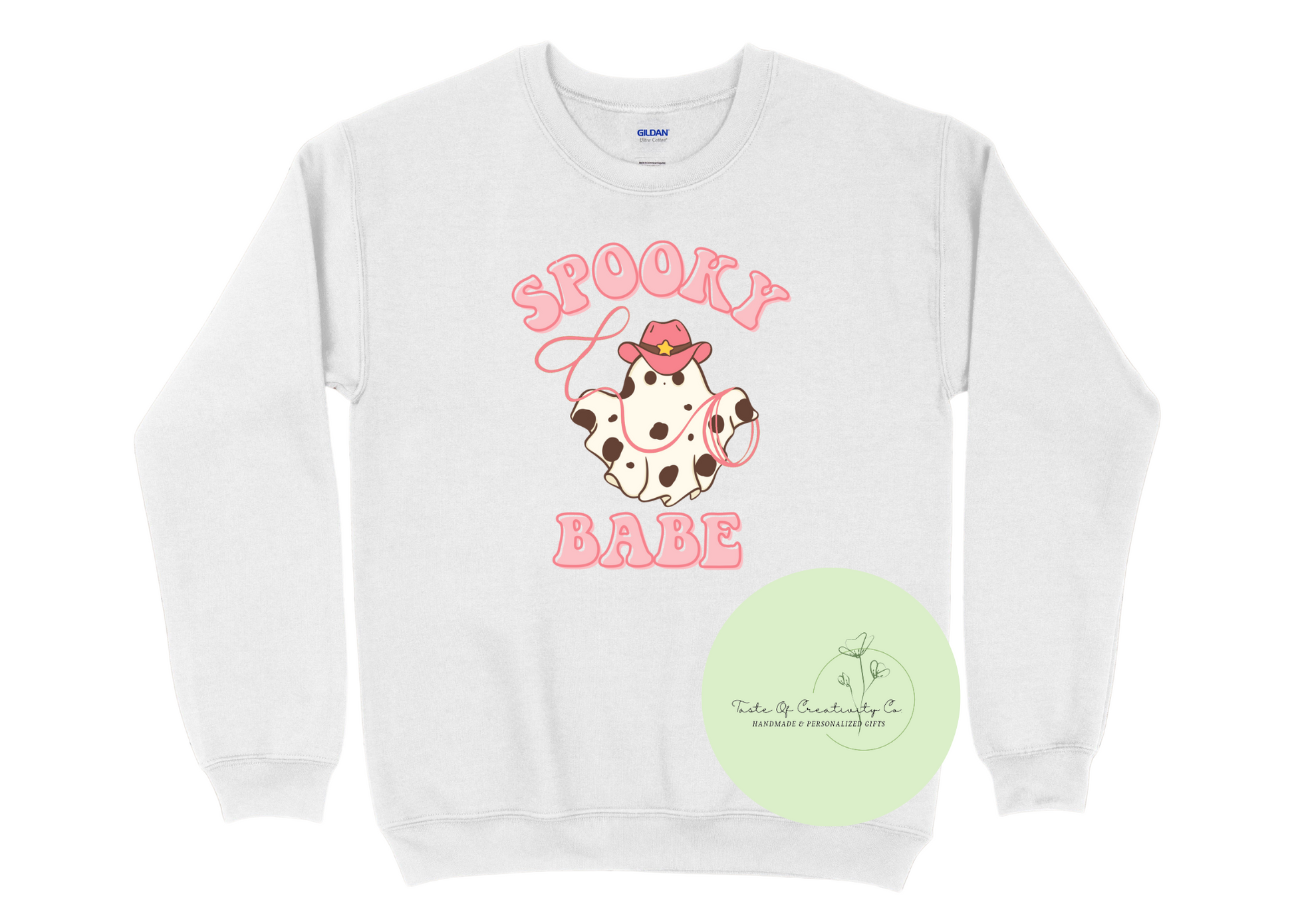 "Spooky Babe" Crewneck Sweater, Spooky Disco Cowgirl Apparel, Halloween Sweater, Ghost Sweater