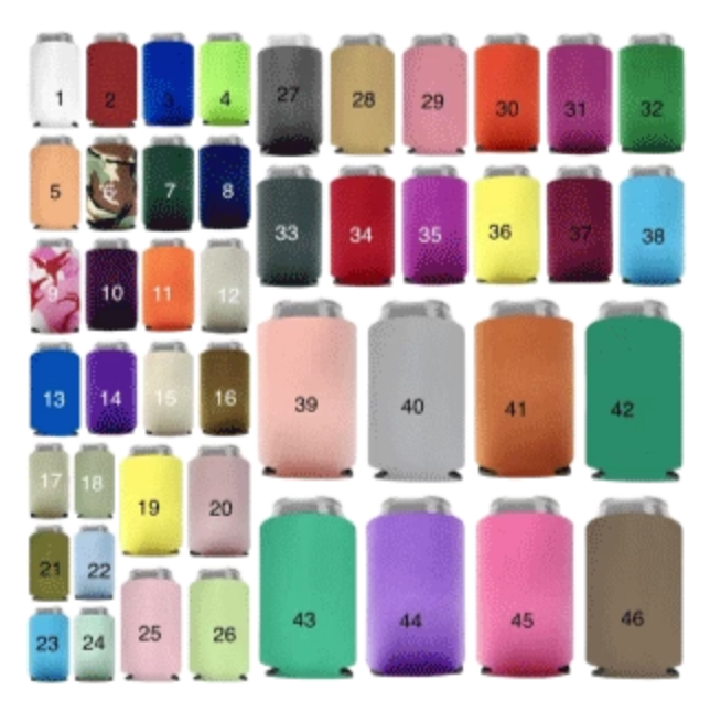 This can cozie is made on our "white" cozie with our red and blue high-quality vinyl. We currently offer over 50 colours of vinyl. If another colour interests you, please attach a note to your order.