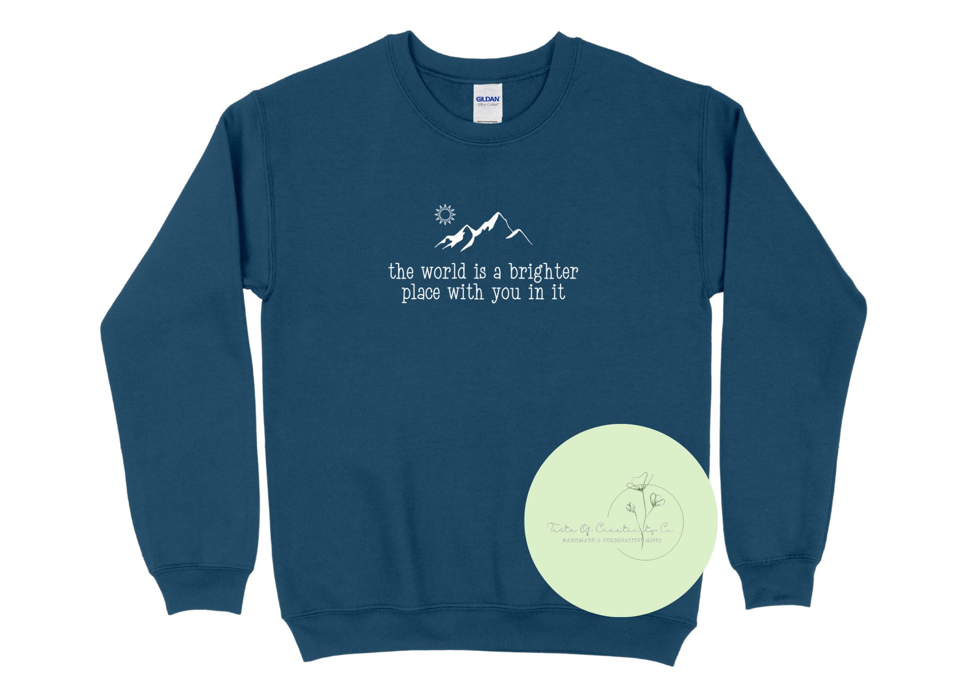 "The World Is a Brighter Place With You In It" Crewneck Sweater, Mental Health Apparel, Mindsets & Mountains Collection