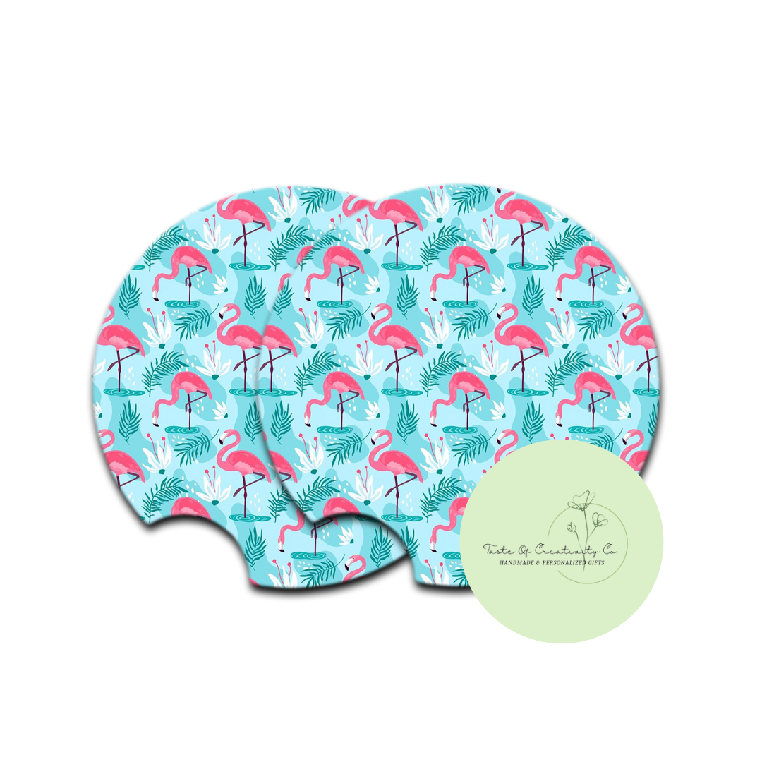 Tropical Flamingos Car Coaster Set, Car Accessory, Gift for Her, Flamingo Gift